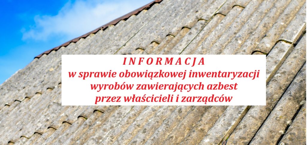 Podmioty gospodarcze, osoby fizyczne prowadzące działalność gospodarczą i osoby prawne wykorzystujące wyroby zawierające azbest przedkładają do Marszałka Województwa Informację o wyrobach zawierających azbest.