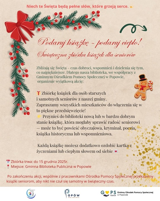 Podaruj książkę – podaruj ciepło! Świąteczna zbiórka książek dla seniorów