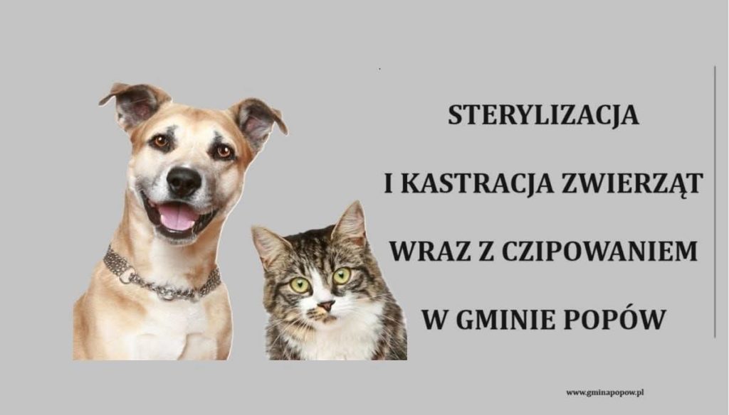 Gmina Popów informuje o rozpoczęciu akcji sterylizacji, kastracji oraz czipowania psów i kotów, skierowanej do właścicieli zwierząt domowych oraz opiekunów kotów wolno żyjących na terenie Gminy Popów.